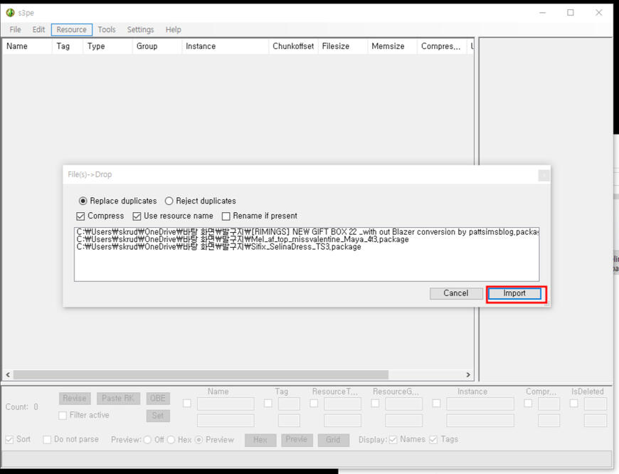 s3pe에 합칠 cc템 파일들을 바탕화면에서 끌어당겨 넣어줍니다.